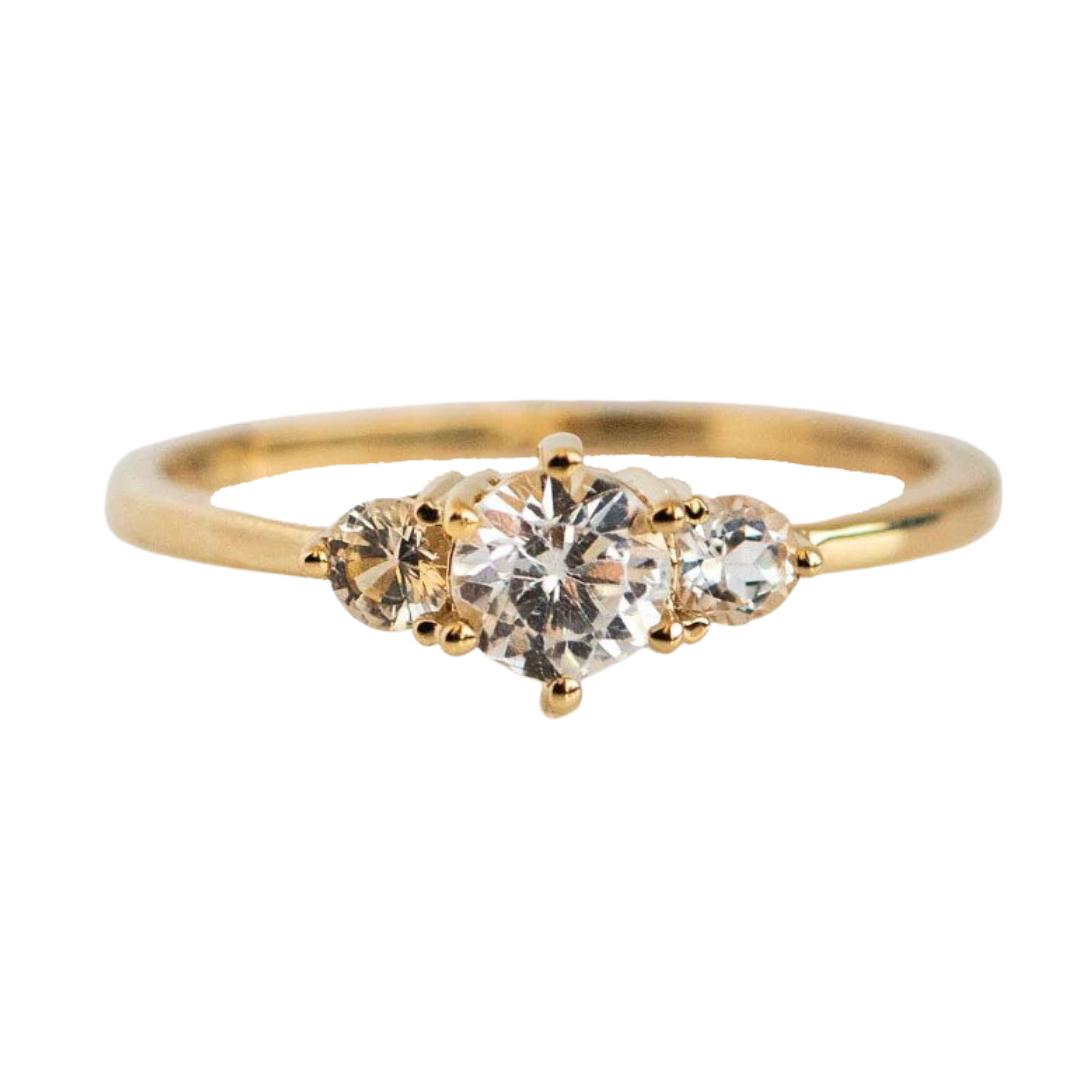 At first glance, most people can’t tell the difference between a diamond and a white sapphire. Both are prized for their rarity, and just like diamonds, white sapphires are judged by their colorlessness, clarity, and precision of cutting. When it comes to carats, however, the differences begin—not least is cost. Above 1.5 carats, the price of a diamond rises steeply, thanks in part to the difficulty in sourcing these stones in substantial sizes (not to mention decades of deeply ingrained marketing messages from the diamond industry). White sapphires of significant size are markedly less expensive. And as a bonus for brides who don’t love bold bling, white sapphires give off a silvery sparkle that’s a bit more subtle than a diamond’s fire.