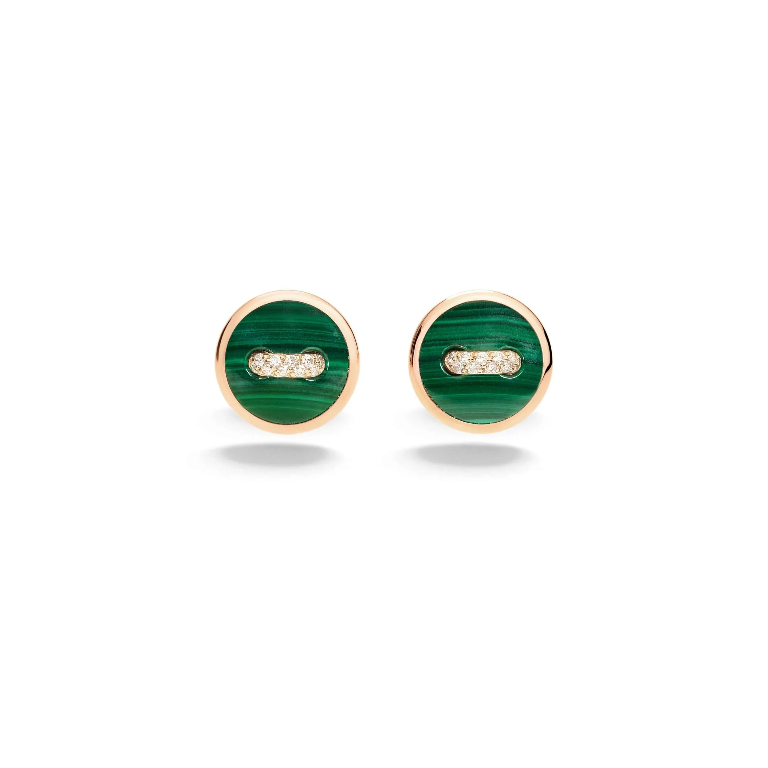 Pomellato 18k rose gold, malachite, and diamond “Pom Pom Dot” earrings, $3,600 at Pomellato.