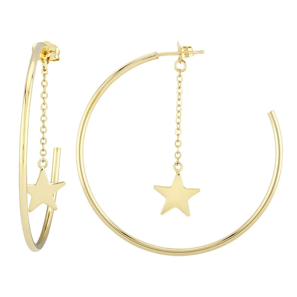 Worthmore 14k yellow gold dangling star hoop earrings, $339 at Worthmore.