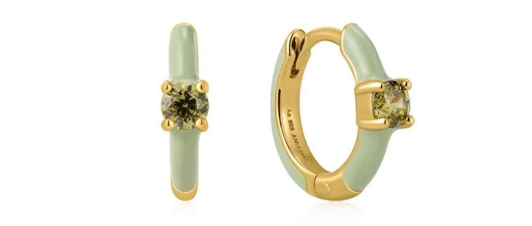 Ania Haie 14k gold plated “Sage Enamel Gold Huggie Hoop” Earrings, $49 at Siebke Hoyt Jewelers