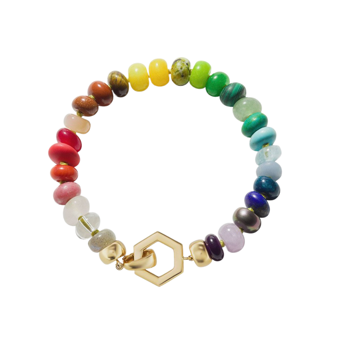Why limit yourself to a single hue, when you can wear them all, all at once? Designers and jewelry lovers alike seem to be subscribing to this polychromatic philosophy for summer, with beaded jewelry in every shade imaginable. It’s a trend that works for all budgets, from high street to high end. Our favorite examples celebrate the natural varicolored variety of gemstones.